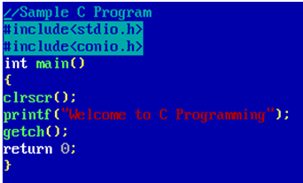 This command includes console input/output header file, conio.h from the C library in the program. The conio.h file contains functions such as clrscr() and getch() to